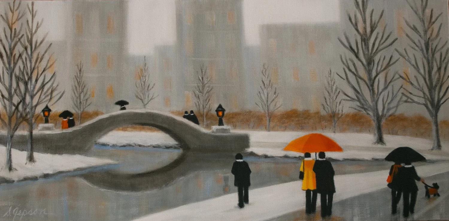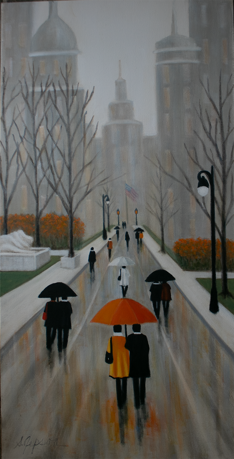 Misty Jaunt Through The Park, Acrylic, 18”w x 18”w Sold